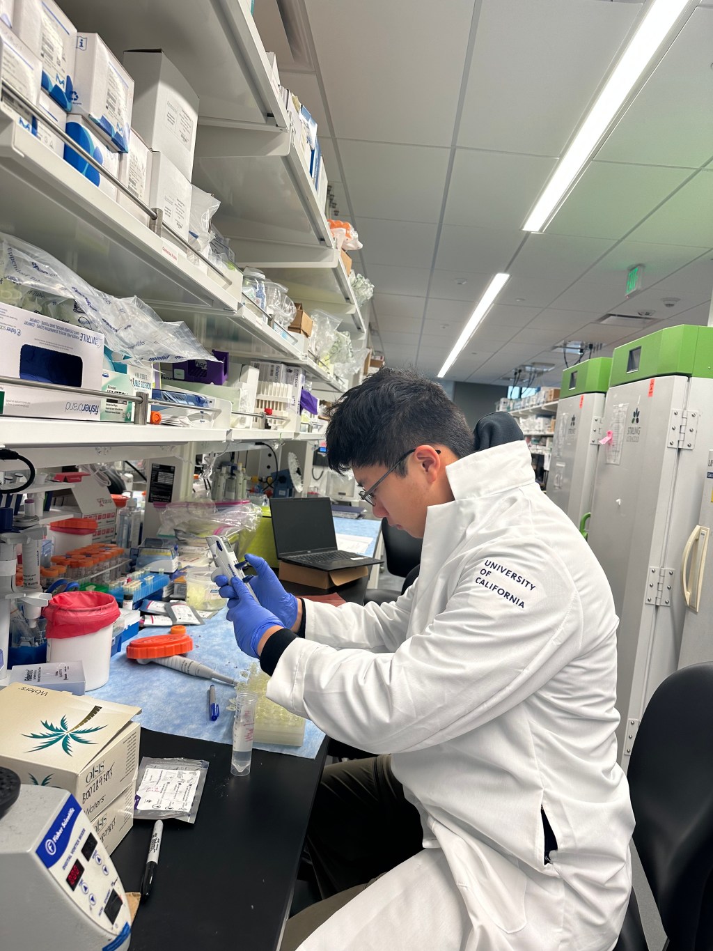 Kevin was initially inspired by his dad, an orthopedic surgeon in China, who became an acupuncturist when he was unable to transfer his license from China to the US. In an attempt to bridge Eastern and Western medicine together, Kevin began cold emailing professors until he got his first research opportunity at a hematology lab. He’d spend three months there, primarily shadowing and assisting with tasks like maintaining isoflurane chambers to anesthetize mice and measure tumors.