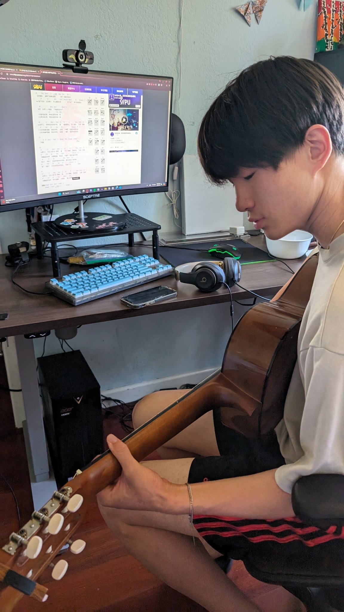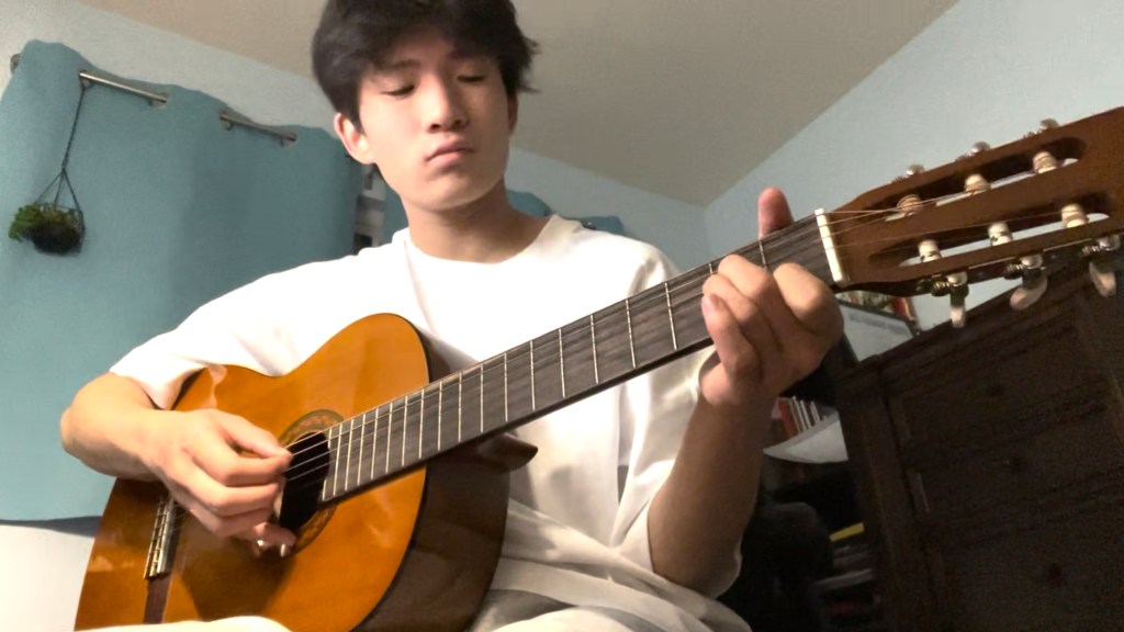 It’s late at night as Aidan Fang, now a senior at Lynbrook High School, gently strums away at his guitar, his hands subconscious gliding to Dmaj7; next Am7; and next Gmaj7 and Bbmaj7… Playing one of his favorite songs to date, “Best Part” by Daniel Caesar, he hums and sings along as it all pieces together in his bedroom, a scene so warming and nostalgic…it’s… hypnotizing…
